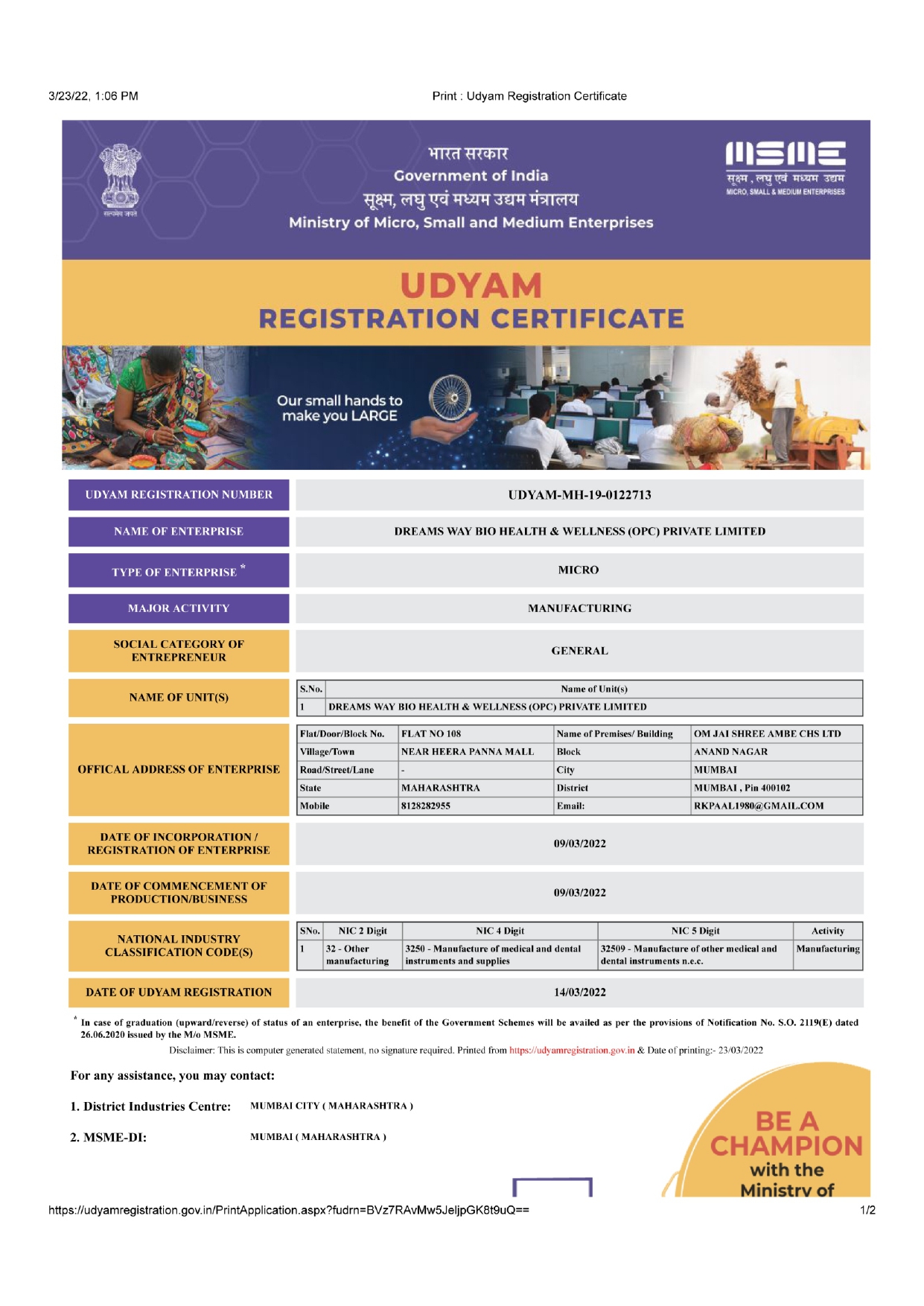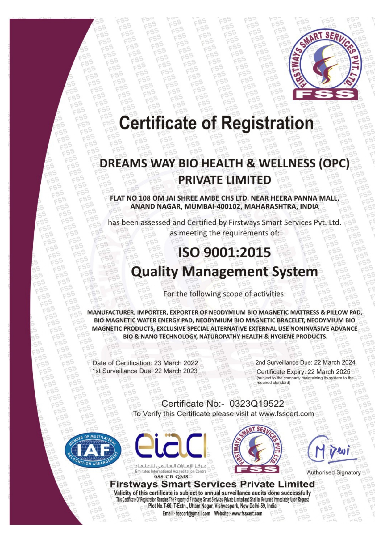 DREAMS WAY BIO HEALTH & WELLNESS is a Marketing Company. It aims to bring happy and prosperous life to millions of people by forming meaningful, long lasting and mutually rewarding business association.